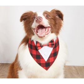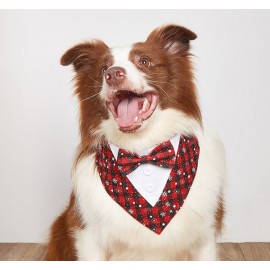 High-end and textured Wedding Suit Dog Bandana-Plaid+Printed Snowflakes